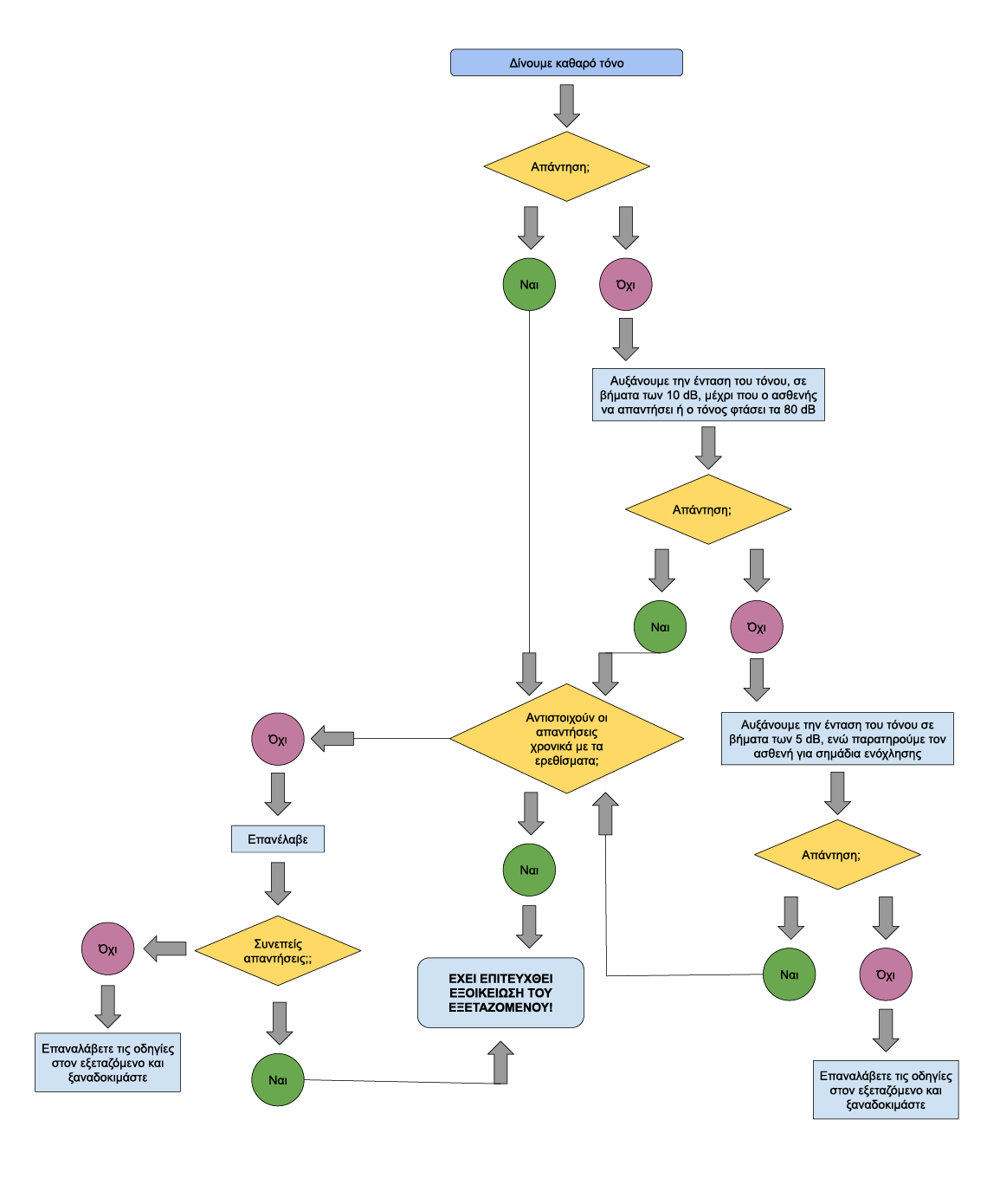 - Η λογική της εξέτασης είναι να εντοπίσουμε την ελάχιστη ένταση ήχου που ακούτε σε κάθε συχνότητα.